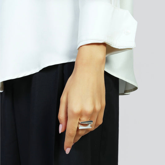 Lineargent anello solitario dal design curvo con zirconia centrale