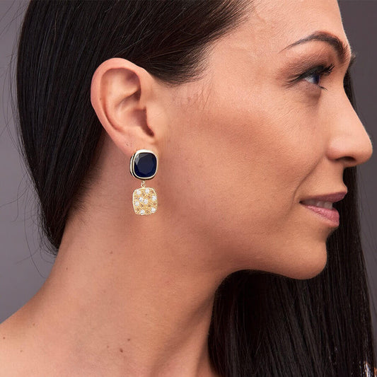 Aquaforte Orecchini Caramelle Reverse con paste vitree blu satinato taglio antico e reverse pavè