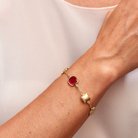 Aquaforte Bracciale Caramelle Reverse con saponetta quadrata, paste vitree grigio perla, rosso fucsia e blu satinato taglio antico e reverse pavè