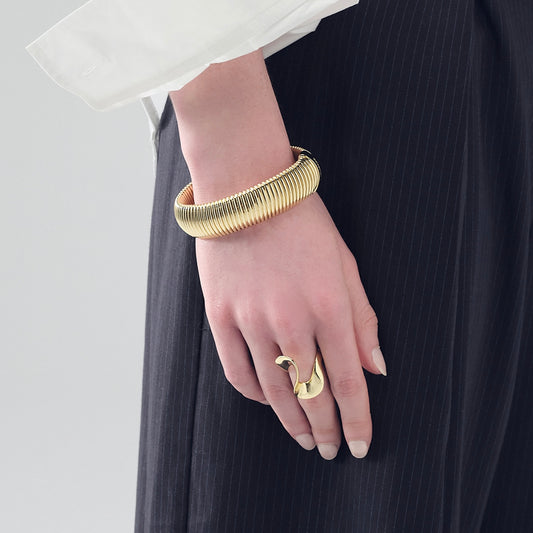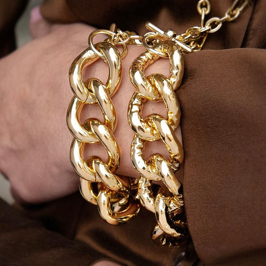Gisel bracciale semi rigido in bronzo dorato con maglie agganciate lucide