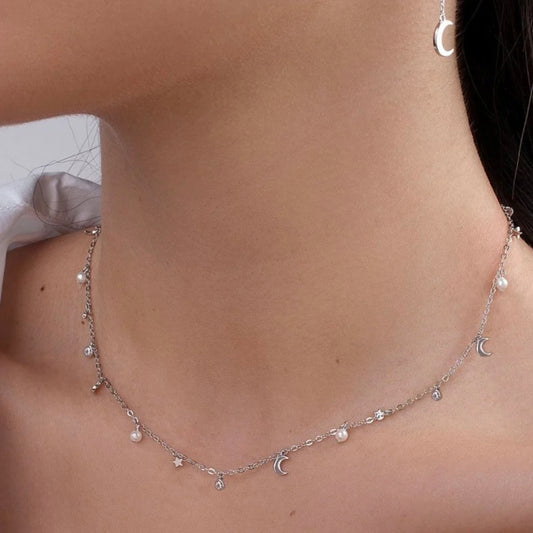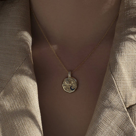 Lineargent collana medaglia design universo con dettaglio zirconi