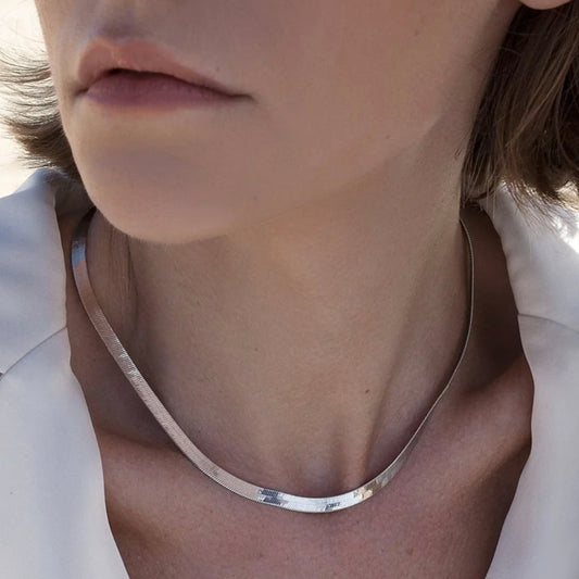 Lineargent collana da festa in argento rigido con disegno lineare e floreale