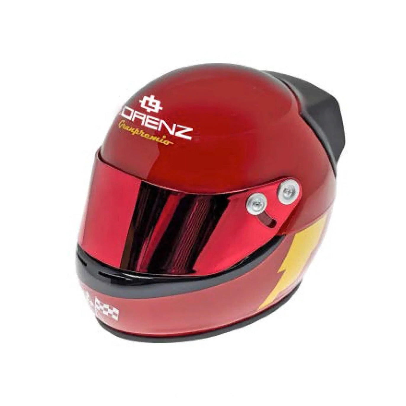 La cassa in acciaio 316L da 42 mm con finitura IP Gun Metal conferisce all’orologio un look grintoso e contemporaneo. Il fondello a vite personalizzato con il logo del casco Granpremiosottolinea il legame con il mondo delle corse, mentre la corona a pressione e i pulsanti in alluminio colorato richiamano i comandi delle vetture da gara.
